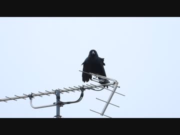 変なポーズのカラスがいた