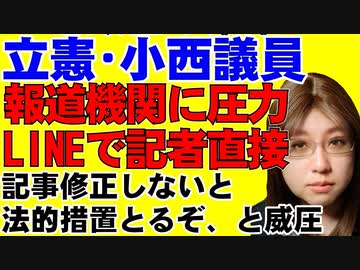 「サルがやることだ。野蛮だ」と発言して大炎上。立憲民主の小西洋之議員が、記者に直接連絡して「記事を直さないなら法的措置をとる」と圧力