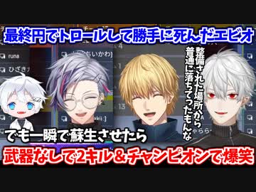 最終円でエビオがトロールして勝手に死んだけど、一瞬で蘇生させたらパンチで2キルしちゃってチャンピオンも取って爆笑のAQF 【葛葉/エクス・アルビオ/不破湊/がっきー/にじさんじ切り抜き】