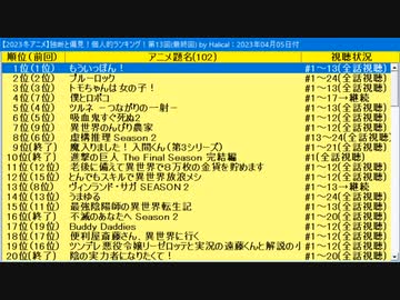 【アニメ雑談】『「2023冬アニメ」独断と偏見!個人的ランキング!』第13回(最終回)