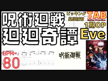 呪術廻戦 1期OP 廻廻奇譚 Eve 楽譜 ギターTAB 練習用動画 BPM80(半分のスピード)
