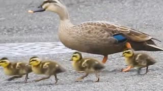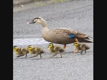 道路を横断カルガモ親子