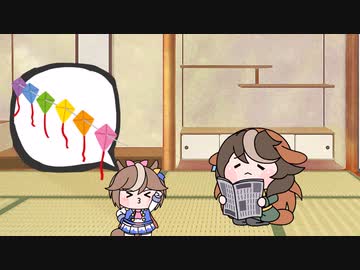 凧あげをするテイオー(たぬき)