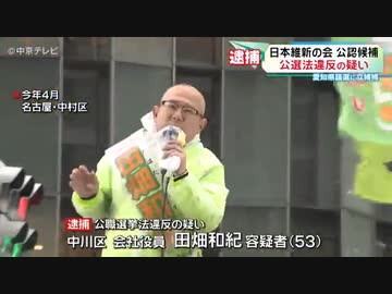 落選した日本維新の会公認候補(53)を逮捕 愛知県議選で違反行為の疑い 運動員3人に現金渡したか(中京テレビNEWS) - 2023-04-30