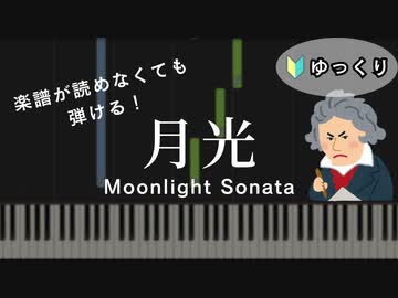 【月光】~ベートーヴェン~ 楽譜が読めなくても弾ける ピアノ初心者 ゆっくり練習用 Beethoven "Moonlight Sonata" for piano beginners