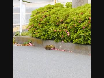 カモ親子が道路の横断で…ヒナ苦戦
