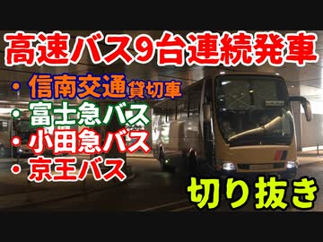 【バスタ新宿】高速バス9台連続発車(信南交通・富士急バス・小田急バス・京王バス)切り抜き