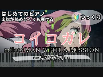 【コイコガレ】~鬼滅の刃~ 楽譜が読めなくても弾けるピアノ 初心者 簡単 ゆっくり練習用『milet×MAN WITH A MISSION』"Koi Kogare" piano beginners