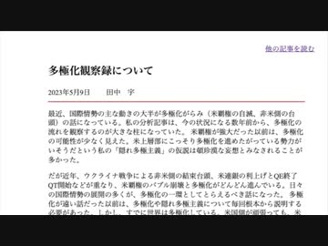 [読み上げ] 多極化観察録について / 田中宇の國際ニュース解説 令和5年2023/05/09