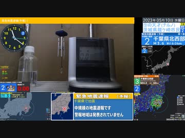 緊急地震速報(予報) 2023/5/10 11:20頃 千葉県北西部 M4.1 最大震度3 茨城県龍ケ崎市震度1
