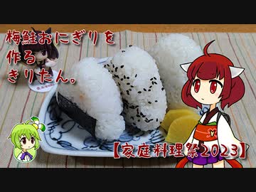 梅鮭おにぎりを作るきりたん。【家庭料理祭2023】