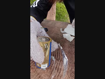 乾電池とアルミホイルでの火起こしに初挑戦サバイバル。