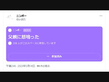 ニンポー(千代豊和) Twitterスペース 父親に怒鳴った