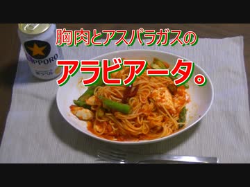胸肉とアスパラのアラビアータ 。