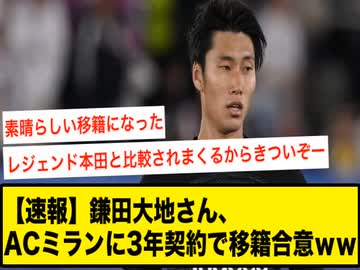 【速報】鎌田大地さん、ACミランに3年契約で移籍合意ww