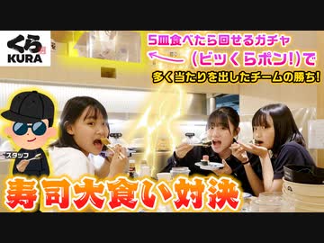 【ろこまこあこ】【大食い】5皿食べたら回せるガチャで多く当たりを出せ!2チームに分かれてくら寿司でビッくらポン!を多く当てたチームが勝ちのお寿司大食い対決やってみた!