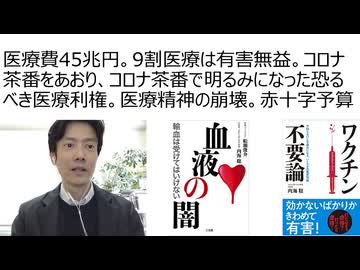 医療費45兆円。9割の医療は有害無益。コロナ茶番をあおり、コロナ茶番で明るみになった恐るべき医療利権。医療精神の崩壊。赤十字の予算額