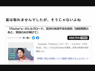 裏は取れませんでしたが、そうじゃないよね 「Fischer's」のシルクロード、突然の体調不良を報告「結婚発表のあと、緊張の糸が解けて」