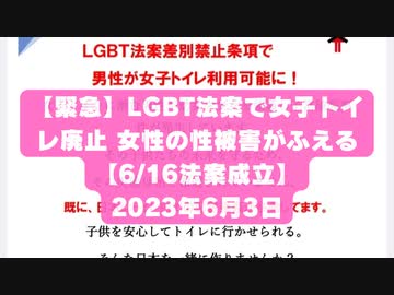 【緊急】LGBT法案で女子トイレ廃止 女性の性被害が増える【6/16法案成立】 2023年6月3日