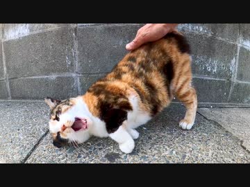フェリー乗り場の前にいた三毛猫ちゃんをナデナデすると喜んでゴロンゴロン転がってカワイイ