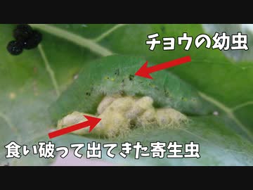 ハチに寄生されたチョウの幼虫【アオムシサムライコマユバチ】
