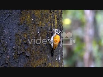 細川康孝 A Himalayan Flame-back woodpecker picking grubs and insects from the bark of a tree