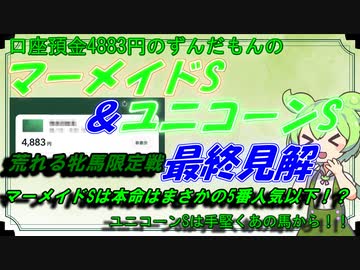 口座預金4883円のずんだもんのマーメイドS&ユニコーンS 予想