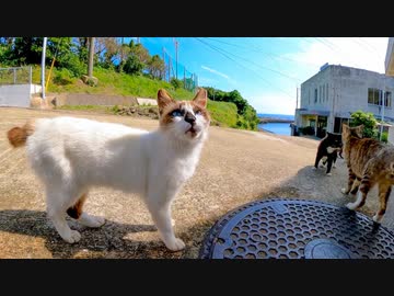 猫島の漁協前の猫の集会に参加してきた