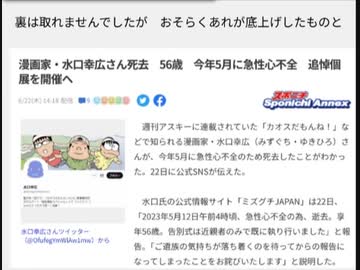 裏は取れませんでしたが おそらくあれが底上げしたものと 漫画家・水口幸広さん死去 56歳 今年5月に急性心不全