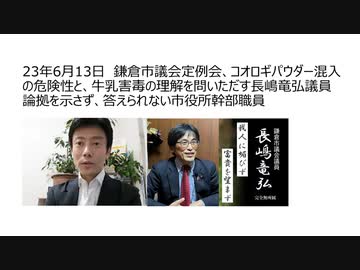 23年6月13日 鎌倉市議会定例会、コオロギパウダー混入の危険性と、牛乳害毒の理解を問いただす長嶋竜弘議員 論拠を示さず、答えられない市役所幹部職員