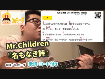 Onちーずの弾き語り『名もなき詩』(Mr.Children)使用コード:C G D A7 Em Am7 B7 Bm