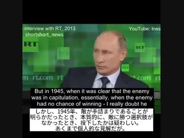 2013年プーチン:第二次世界大戦時の原爆投下についてコメント: しかしアメリカ人はこれをやった――(非核国だった日本は事実誤認、日本軍は核兵器を開発していた)に対して原爆を投下した