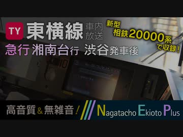 【ワンマン化・相鉄直通】東急東横線 急行湘南台行き 車内自動放送 (渋谷発車後)