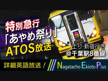 【列車名有・詳細英語】特急 あやめ祭り 新宿行き ATOS連動放送@千葉駅 8番線