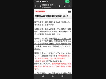屋根にソーラーパネルがあるお家、停電時にパワーコンディショナを「自立運転」モードに切り替えることで、昼間のみ電化製品の一部が「パワーコンディショナ内臓の停電用コンセント」から使用出来る場合があります。