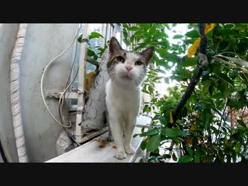エアコン室外機の上で寝ていた猫、ナデナデすると起きて擦り寄ってきた