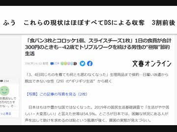 ふう これらの現状はほぼすべてDSによる収奪 3割前後 「食パン3枚とコロッケ1個、スライスチーズ1枚」1日の食費が合計300円のときも 極限”節約生活