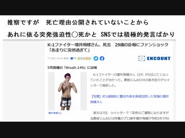 K-1ファイター増井侑輝さん死去 29歳 推察ですが 死亡理由公開されていないことから あれに依る突発強迫性◯死かと SNSでは積極的発言ばかり