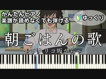 【朝ごはんの歌】~コクリコ坂から~ 楽譜が読めなくても弾ける 簡単ピアノ 初心者向け ゆっくり練習用『From UP on Poppy Hill』"手嶌 葵" for piano beginners