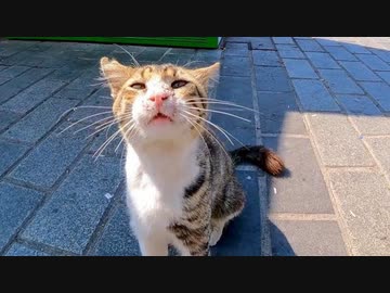 港近くの売店で寝ていた野良猫をナデナデすると懐いてきた
