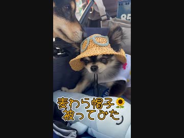 麦わら帽子が似合うチワワ
