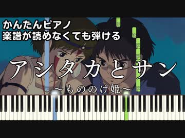 【アシタカとサン】~もののけ姫~ 楽譜が読めなくても弾ける 簡単ピアノ 初心者向け 原曲テンポver.『Ashitaka and San』"GHIBLI" for piano beginners