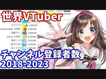 世界VTuberチャンネル登録数ランキング 2018-2023【バーチャルユーチューバー】