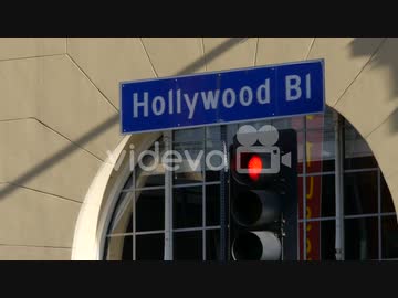 Los Angeles Hollywood Street Sign And Red Traffic Light 杉山健一郎