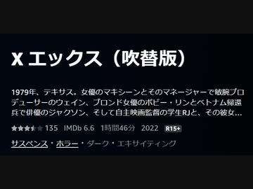 X エックス(吹替版)1979年、テキサス。女優のマキシーンとそのマネージャーで敏腕プロデューサーのウェイン、ブロンド女優のボビー・リンとベトナム帰還兵で俳優のジャクソン