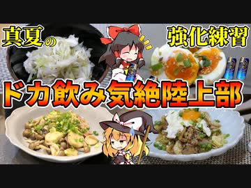 【ゆっくり料理】真夏にビールを流し込むためのおかず作り。鶏ねぎ塩・ゆで卵ナムル・キノコの酒蒸し・焼うどん。ジョギング後にドカ飲み気絶するおっさんの生態。