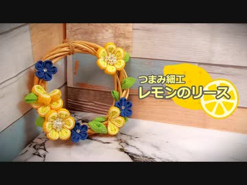 つまみ細工でレモン柄っぽいリース作ってみた