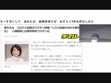も~すきにして 呆れたわ 癌保有者だぜ おそらく3年生存なしかと 堀ちえみ コロナ6回目のワクチン接種「リスク回避の方が大事かな」 2週間後には帯状疱疹ワクチンも