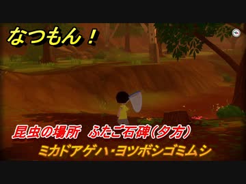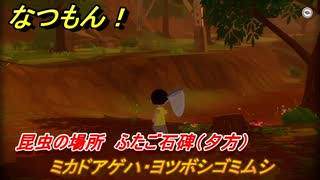 なつもん! 昆虫の場所 ふたご石碑(夕方) ミカドアゲハ・ヨツボシゴミムシ 昆虫集めてステッカーを貰おう! #375 【なつもん!20世紀の夏休み】