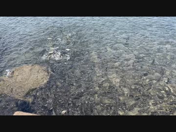 秋田県 田沢湖 たつこ像そば エサに群がる異様な数のウグイ 2023 0729